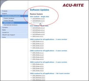 First, connect the USB cable (or RS 232 cable) to the ACU-RITE DRO and PC. Please do this step before the operator turns on the power of the DRO. Next, the user will need to download the driver for the USB connection (VUE only); that driver is found on the ACU-RITE website illustrated in Figure 1.