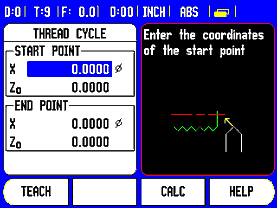 First, the user should insert parameters in the thread cycle menu. Second, enter the start and end points. Third, move to zero and engage the thread lever.