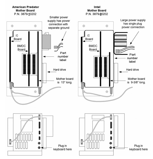 To begin the process of replacing the hard drive on MILLPWR, you first need to identify the motherboard. Use the drawing below as a guide, then follow the procedure for that brand of motherboard.